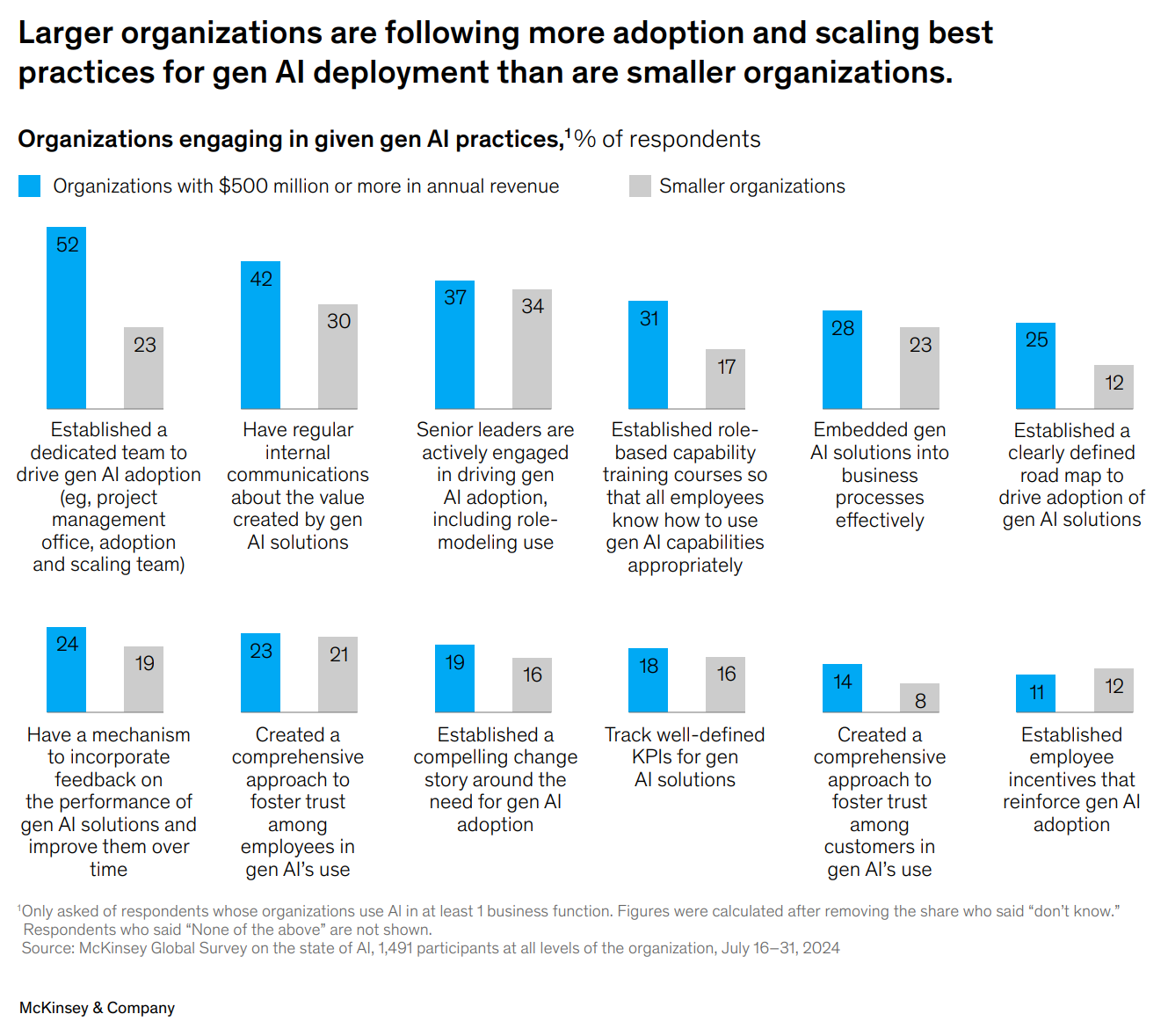 - 하지만 부정확성·설명가능성은 기업 규모 무관 (기술 자체의 한계)